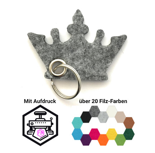 Produktinformationen "Krone Schlüsselanhänger Filz | Dunkelgrau-meliert (RT530) | 1-farbiger Transferdruck"