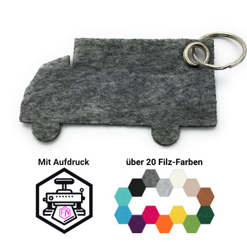 Produktinformationen "LKW Schlüsselanhänger Filz | Dunkelgrau-meliert (RT530) | 1-farbiger Transferdruck"